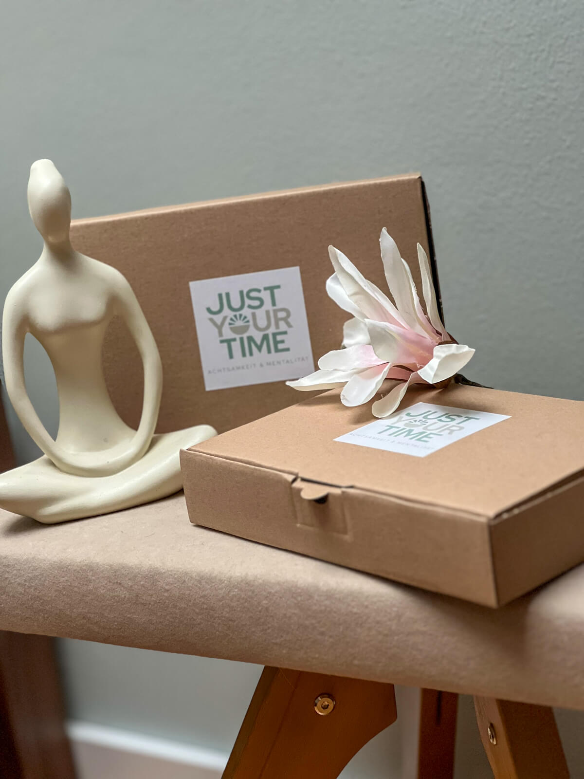 Die Box soll dich im Alltag erinnern, liebevoll und achtsam mit dir umzugehen. Die Box habe ich liebevoll verpackt und sie beinhaltet ein Workbook und allerlei Kleinigkeiten, die deine Mentale Gesundheit fördert und dein Wohlbefinden steigert.